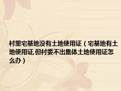 导读 目前大家应该是对宅基地有土地使用证,但村委不出集体土地使用证怎么办比较感兴趣的,所以今天好房网小编CC就来为大家整理了一些关于宅基地