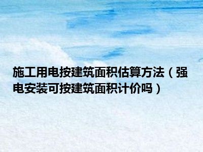 导读 目前大家应该是对强电安装可按建筑面积计价吗比较感兴趣的,所以今天好房网小编CC就来为大家整理了一些关于强电安装可按建筑面积计价吗方面