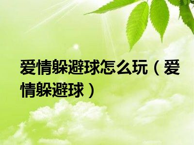 导读 目前是有很多朋友们对于爱情躲避球这个信息比较感兴趣,那么小编也是收集了一些爱情躲避球相关的信息来分享给大家,希望你会喜欢哦。