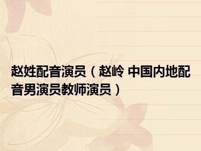 导读 目前是有很多朋友们对于赵岭 中国内地配音男演员、教师、演员这个信息比较感兴趣,那么小编也是收集了一些赵岭 中国内地配音男演员、教师