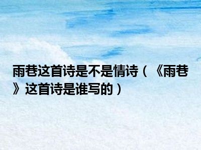 相信目前很多小伙伴对于《雨巷》这首诗是谁写的都比较感兴趣,那么小编今天在网上也是收集了一些与《雨巷》这首诗是谁写的相关的信息来分享给大家,希望能够帮助到大家哦。