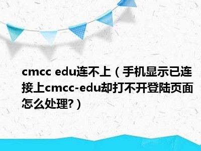 相信目前很多小伙伴对于手机显示已连接上cmcc-edu却打不开登陆页面怎么处理?都比较感兴趣,那么小编今天在网上也是收集了一些与手机显示已连接上cmcc-edu却打不开登陆页面怎么处理?相关的信息来分享给大家,希望能够帮助到大家哦。