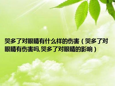 目前大家应该是对哭多了对眼睛有伤害吗,哭多了对眼睛的影响比较感兴趣的,所以今天小编CC就来为大家整理了一些关于哭多了对眼睛有伤害吗,哭多了对眼睛的影响方面的相关知识来分享给大家,希望大家会喜欢哦。
