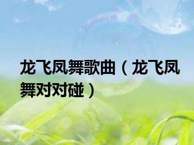 导读 目前是有很多朋友们对于龙飞凤舞对对碰这个信息比较感兴趣,那么小编也是收集了一些龙飞凤舞对对碰相关的信息来分享给大家,希望你会喜欢哦