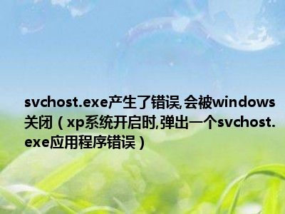相信目前很多小伙伴对于xp系统开启时,弹出一个svchost.exe应用程序错误都比较感兴趣,那么小编今天在网上也是收集了一些与xp系统开启时,弹出一个svchost.exe应用程序错误相关的信息来分享给大家,希望能够帮助到大家哦。