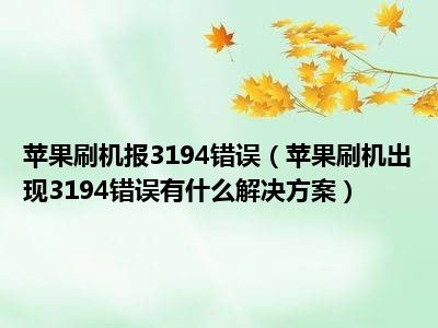 相信目前很多小伙伴对于苹果刷机出现3194错误有什么解决方案都比较感兴趣,那么小编今天在网上也是收集了一些与苹果刷机出现3194错误有什么解决方案相关的信息来分享给大家,希望能够帮助到大家哦。