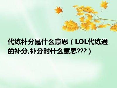 相信目前很多小伙伴对于LOL代练通的补分,补分时什么意思???都比较感兴趣,那么小编今天在网上也是收集了一些与LOL代练通的补分,补分时什么
