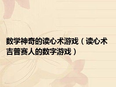 导读 目前是有很多朋友们对于读心术 吉普赛人的数字游戏这个信息比较感兴趣,那么小编也是收集了一些读心术 吉普赛人的数字游戏相关的信息来分