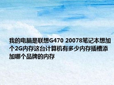 相信目前很多小伙伴对于我的电脑是联想G470 20078笔记本,想加一个2G内存,请问这个电脑几个内存插槽?加哪个牌子的内存?都比较感兴趣,那么小编今天在网上也是收集了一些与我的电脑是联想G470 20078笔记本,想加一个2G内存,请问这个电脑几个内存插槽?加哪个牌子的内存?相关的信息来分享给大家,希望能够帮助到大家哦。