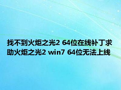 相信目前很多小伙伴对于火炬之光2 64 位联机补丁我找不到啊!! 求助 火炬之光2 win7 64位没法联机!!都比较感兴趣,那么小编今天在网上也是收集了一些与火炬之光2 64 位联机补丁我找不到啊!! 求助 火炬之光2 win7 64位没法联机!!相关的信息来分享给大家,希望能够帮助到大家哦。