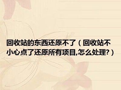 相信目前很多小伙伴对于回收站不小心点了还原所有项目,怎么处理?都比较感兴趣,那么小编今天在网上也是收集了一些与回收站不小心点了还原所有项目,怎么处理?相关的信息来分享给大家,希望能够帮助到大家哦。