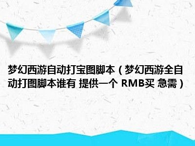 相信目前很多小伙伴对于梦幻西游全自动打图脚本谁有 提供一个 RMB买 急需都比较感兴趣,那么小编今天在网上也是收集了一些与梦幻西游全自动打图脚本谁有 提供一个 RMB买 急需相关的信息来分享给大家,希望能够帮助到大家哦。