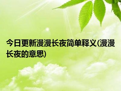 目前上述的内容应该能够为大家解答出大家对于漫漫长夜简单释义(漫漫长夜的意思)的疑惑了,所以如果大家还想要了解更多的知识内容,也可以关注本站其他文章进行了解哦。