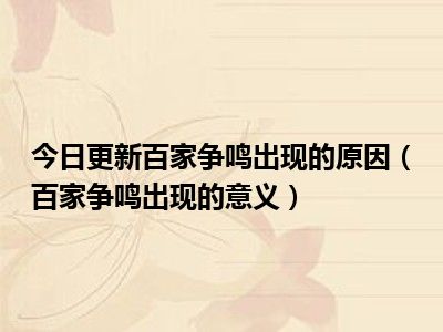 百家争鸣的原因(百家争鸣的意义!)