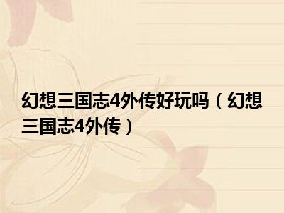 导读 目前是有很多朋友们对于幻想三国志4外传这个信息比较感兴趣,那么小编也是收集了一些幻想三国志4外传相关的信息来分享给大家,希望你会喜欢