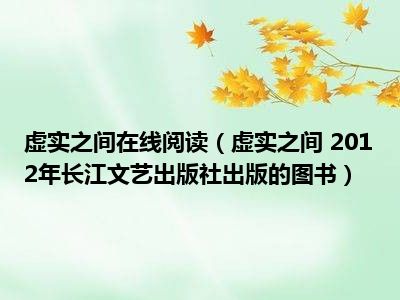 导读 目前是有很多朋友们对于虚实之间 2012年长江文艺出版社出版的图书这个信息比较感兴趣,那么小编也是收集了一些虚实之间 2012年长江文艺出
