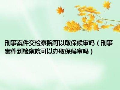 目前大家应该是对刑事案件到检察院可以办取保候审吗比较感兴趣的,所以今天CC就来为大家整理了一些关于刑事案件到检察院可以办取保候审吗方面的相关知识来分享给大家,希望大家会喜欢哦。