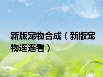 导读 目前是有很多朋友们对于新版宠物连连看这个信息比较感兴趣,那么小编也是收集了一些新版宠物连连看相关的信息来分享给大家,希望你会喜欢哦