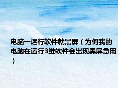 相信目前很多小伙伴对于为何我的电脑在运行3维软件会出现黑屏。。急用都比较感兴趣,那么小编今天在网上也是收集了一些与为何我的电脑在运行3维软件会出现黑屏。。急用相关的信息来分享给大家,希望能够帮助到大家哦。