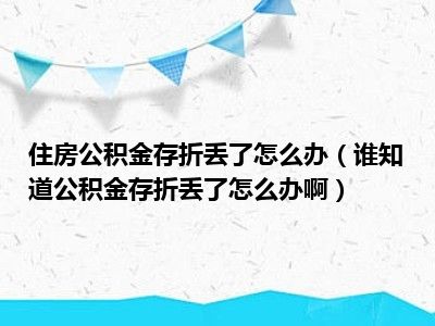 导读 目前大家应该是对谁知道公积金存折丢了怎么办啊比较感兴趣的,所以今天好房网小编CC就来为大家整理了一些关于谁知道公积金存折丢了怎么办啊
