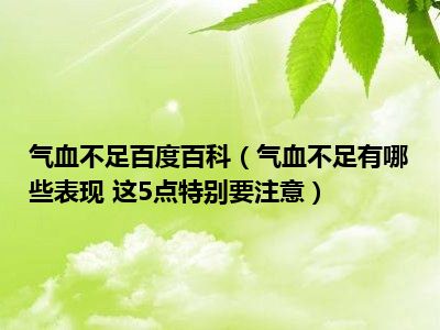导读 目前大家应该是对气血不足有哪些表现 这5点特别要注意比较感兴趣的,所以今天小编CC就来为大家整理了一些关于气血不足有哪些表现 这5点特...
