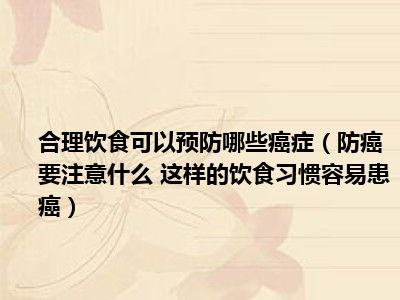 目前大家应该是对防癌要注意什么 这样的饮食习惯容易患癌比较感兴趣的,所以今天小编CC就来为大家整理了一些关于防癌要注意什么 这样的饮食习惯容易患癌方面的相关知识来分享给大家,希望大家会喜欢哦。