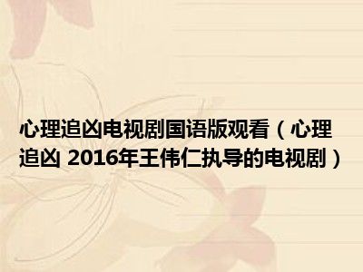导读 目前是有很多朋友们对于心理追凶 2016年王伟仁执导的电视剧这个信息比较感兴趣,那么小编也是收集了一些心理追凶 2016年王伟仁执导的电视