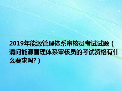 相信目前很多小伙伴对于请问能源管理体系审核员的考试资格有什么要求吗?都比较感兴趣,那么小编今天在网上也是收集了一些与请问能源管理体系审核员的考试资格有什么要求吗?相关的信息来分享给大家,希望能够帮助到大家哦。