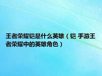 导读 目前是有很多朋友们对于铠 手游王者荣耀中的英雄角色这个信息比较感兴趣,那么小编也是收集了一些铠 手游王者荣耀中的英雄角色相关的信息