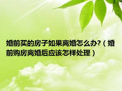 目前大家应该是对婚前购房离婚后应该怎样处理比较感兴趣的,所以今天CC就来为大家整理了一些关于婚前购房离婚后应该怎样处理方面的相关知识来分享给大家,希望大家会喜欢哦。