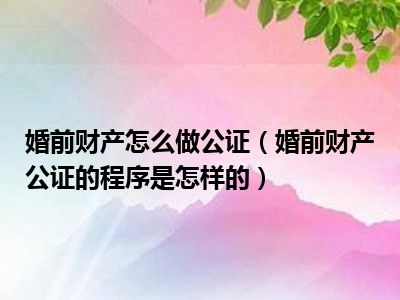 目前大家应该是对婚前财产公证的程序是怎样的比较感兴趣的,所以今天CC就来为大家整理了一些关于婚前财产公证的程序是怎样的方面的相关知识来分享给大家,希望大家会喜欢哦。