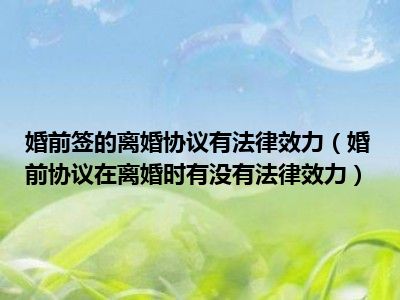 目前大家应该是对婚前协议在离婚时有没有法律效力比较感兴趣的,所以今天CC就来为大家整理了一些关于婚前协议在离婚时有没有法律效力方面的相关知识来分享给大家,希望大家会喜欢哦。