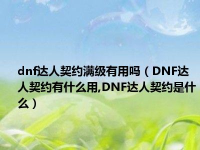 相信目前很多小伙伴对于DNF达人契约有什么用,DNF达人契约是什么都比较感兴趣,那么小编今天在网上也是收集了一些与DNF达人契约有什么用,DNF达人契约是什么相关的信息来分享给大家,希望能够帮助到大家哦。