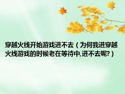 导读相信目前很多小伙伴对于为何我进穿越火线游戏的时候老在等待中,进不去呢?都比较感兴趣,那么小编今天在网上也是收集了一些与为何我进穿越...
