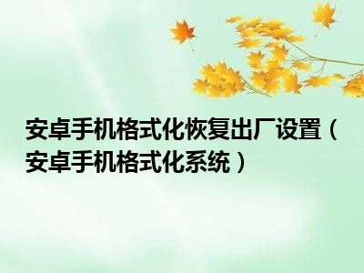 相信目前很多小伙伴对于安卓手机格式化系统都比较感兴趣,那么小编今天在网上也是收集了一些与安卓手机格式化系统相关的信息来分享给大家,希望能够帮助到大家哦。