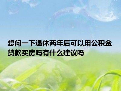导读 目前大家应该是对我想问还有2年退休可以用公积金贷款买房吗有什么建议呢比较感兴趣的,所以今天好房网小编CC就来为大家整理了一些关于