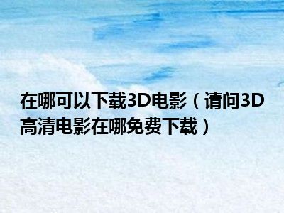 相信目前很多小伙伴对于请问3D高清电影在哪免费下载都比较感兴趣,那么小编今天在网上也是收集了一些与请问3D高清电影在哪免费下载相关的信息来分享给大家,希望能够帮助到大家哦。