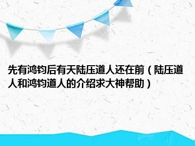 目前应该是有很多小伙伴对于陆压道人和鸿钧道人的介绍求大神帮助方面的信息比较感兴趣,现在小编就收集了一些与陆压道人和鸿钧道人的介绍求大神帮助相关的信息来分享给大家,感兴趣的小伙伴可以接着往下看,希望会帮助到你哦。