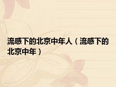 导读 相信目前很多小伙伴对于流感下的北京中年都比较感兴趣,那么小搜今天在网上也是收集了一些与流感下的北京中年相关的信息来分享给大家,希望
