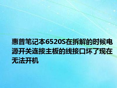 导读 相信目前很多小伙伴对于求助 惠普笔记本6520S 在拆机时,把电源开关和主板相连的那条线的接口坏了,现在开不了机了都比较感兴趣,那么小编...