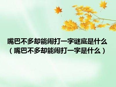 目前应该是有很多小伙伴对于嘴巴不多却能闹打一字是什么方面的信息比较感兴趣,现在小编就收集了一些与嘴巴不多却能闹打一字是什么相关的信息来分享给大家,感兴趣的小伙伴可以接着往下看,希望会帮助到你哦。