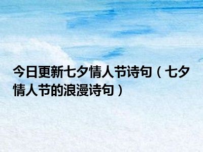 目前上述的内容应该能够为大家解答出大家对于七夕情人节诗句(七夕情人节的浪漫诗句)的疑惑了,所以如果大家还想要了解更多的知识内容,也可以关注本站其他文章进行了解哦。