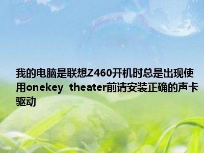 相信目前很多小伙伴对于我的电脑是联想Z460,开机的时候总会出现“使用onekey theater 前请安装正确的声卡驱动程序” 那时联想的都比较感兴趣,那么小编今天在网上也是收集了一些与我的电脑是联想Z460,开机的时候总会出现“使用onekey theater 前请安装正确的声卡驱动程序” 那时联想的相关的信息来分享给大家,希望能够帮助到大家哦。