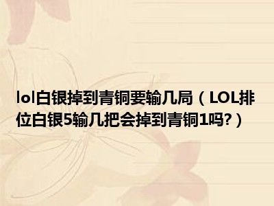 相信目前很多小伙伴对于LOL排位白银5输几把会掉到青铜1吗?都比较感兴趣,那么小编今天在网上也是收集了一些与LOL排位白银5输几把会掉到青铜1吗?相关的信息来分享给大家,希望能够帮助到大家哦。
