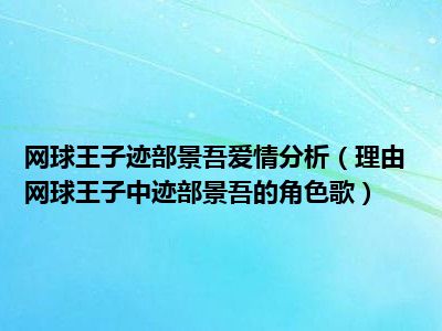 导读 目前是有很多朋友们对于理由 网球王子中迹部景吾的角色歌这个信息比较感兴趣,那么小编也是收集了一些理由 网球王子中迹部景吾的角色歌相