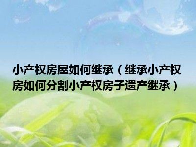 导读 目前大家应该是对继承小产权房如何分割小产权房子遗产继承比较感兴趣的,所以今天好房网小编CC就来为大家整理了一些关于继承小产权房如何分
