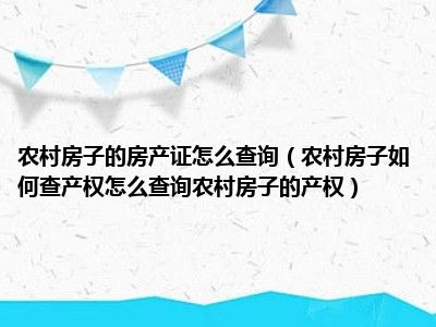 导读 目前大家应该是对农村房子如何查产权怎么查询农村房子的产权比较感兴趣的,所以今天好房网小编CC就来为大家整理了一些关于农村房子如何查产