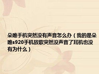 相信目前很多小伙伴对于我的是朵唯s920手机放歌突然没声音了、耳机也没有、为什么都比较感兴趣,那么小编今天在网上也是收集了一些与我的是朵唯s920手机放歌突然没声音了、耳机也没有、为什么相关的信息来分享给大家,希望能够帮助到大家哦。