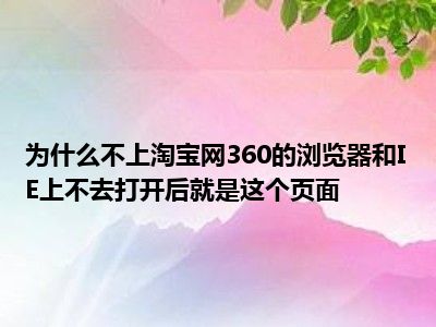 相信目前很多小伙伴对于为何淘宝网上不去啊,360的浏览器,IE都上不去,打开后是这个页面都比较感兴趣,那么小编今天在网上也是收集了一些与为何淘宝网上不去啊,360的浏览器,IE都上不去,打开后是这个页面相关的信息来分享给大家,希望能够帮助到大家哦。