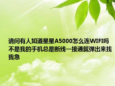 相信目前很多小伙伴对于请问,有人知道天星A5000怎么连接WIFI不,我的手机总是连接不上,一连接就给我弹出来了!急!!!!!!!都比较感兴趣,那么小编今天在网上也是收集了一些与请问,有人知道天星A5000怎么连接WIFI不,我的手机总是连接不上,一连接就给我弹出来了!急!!!!!!!相关的信息来分享给大家,希望能够帮助到大家哦。